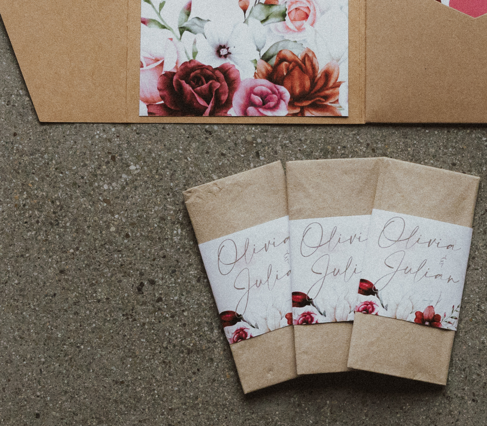 Kreative Motive und komplette Papeterie-Konzepte für einzigartige Hochzeitsmomente.